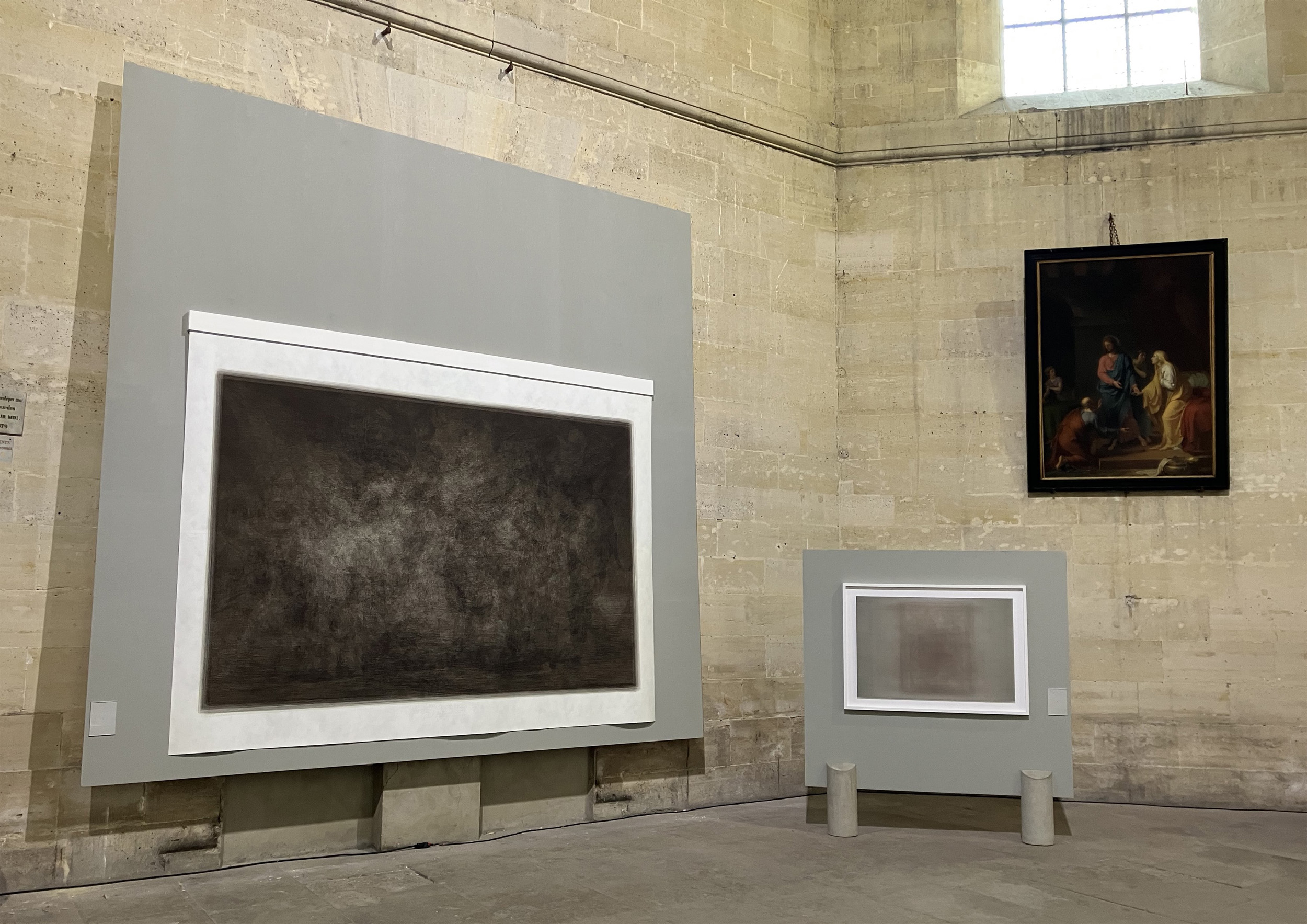 I gained access to the storage rooms of the Goya Museum in Castres, France. With my 400-megapixel camera, I photographed each of the eighty engravings that make up Francisco de Goya’s The Disasters of War, The Caprices, and the twenty-two engravings that make up The Disparates, which I then superimposed into an ensemble, or image. I printed the results in very large format, multiplying the size of the original works by ten, in order to provoke a physical encounter with the viewer similar to that imposed by Goya’s Black Paintings series—but here without iconography and without images, or with all of Goya’s images and ghosts. The dreamlike quality, violence, grotesqueness, and tragedy of these bodies of work are compressed here into a single image haunted by specters whose presence can only be guessed at. Lodged between “too much” and disappearance, this work is a continuation of my recent and current research, in particular Matière noire [Dark Matter], both an attempt to exhaust the act of photography and a meditation on finitude. — Read Artist Statement.