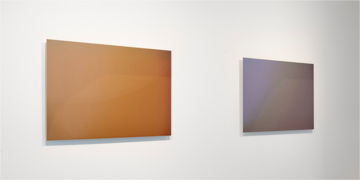 Réalisées à partir d’un boîtier photographique numérique employé sans lentille, les images de la série Lieux-monuments sont un enregistrement de la rencontre entre la lumière et l’appareil, pointé chaque fois vers un lieu iconique de villes que l’artiste parcourt en voyage. Ne résulte de l’expérience qu’une couleur, marquée parfois d’une arête ou d’une courbe témoignant du parcours de la lumière au sein de l’appareil lui-même : autant d’indices qui renvoient au processus photographique plus qu’au sujet photographié.